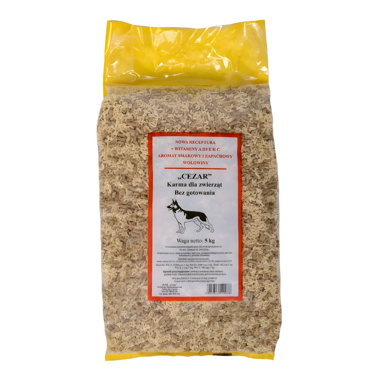 Makaron błyskawiczny bez gotowania dla psów Cezar to świetny sposób na wprowadzenie wypełniacza do diety pupila. Można go podawać np. z mięsem mrożonym lub mokrą karmą.