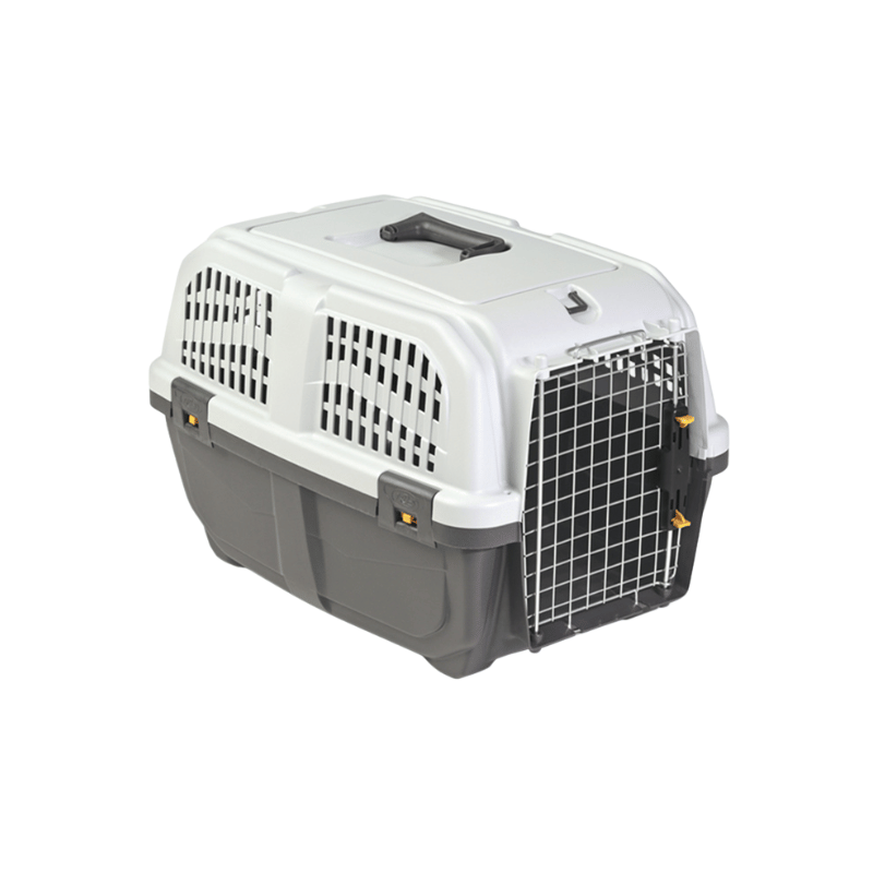 Transporter Skudo to transporter dla zwierząt spełniający surowe normy przewozu zwierząt w transporcie lotniczym IATA, zapewniając bezpieczeństwo i wygodę podczas podróży z czworonogiem. Wytrzymały plastikowy materiał oraz metalowe drzwi z podwójnym systemem zamykania zapewniają niezawodność i bezpieczeństwo transportera. Otwory wentylacyjne w górnej części transportera zapewniają odpowiedni przepływ powietrza, co jest istotne szczególnie podczas podróży w ciepłe dni. Wykonany z materiałów łatwych do czyszczenia, co ułatwia utrzymanie transportera w odpowiedniej higienie. Zestaw zawiera plastikową rączkę do przenoszenia oraz uchwyty na doczepienie długiego paska, co sprawia, że transporter jest wygodny w użytkowaniu.